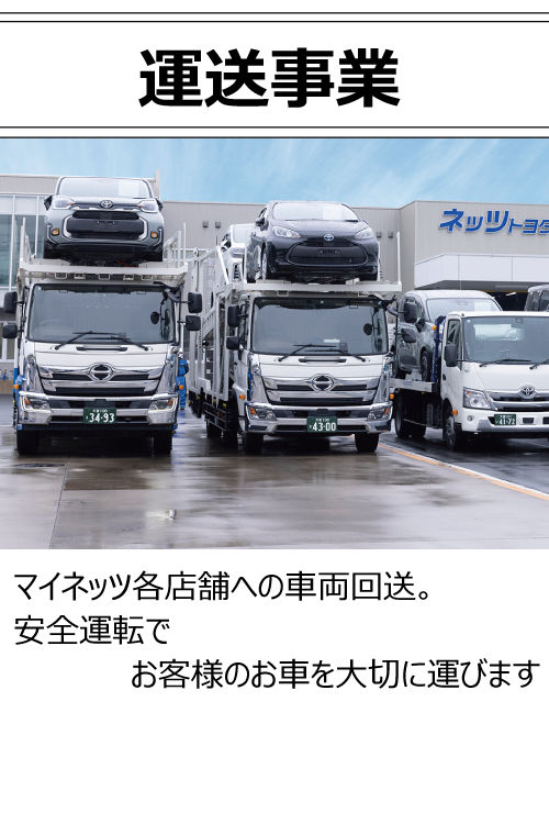 私たちは、ネッツトヨタ東埼玉関連企業です。すべてのお客様のカーライフをサポートいたします。 最先端の技術とサービスで、お客様に喜んでもらえる仕事をします 私たちは、マイネッツのお客様の新車納車から板金修理、大切にお乗りいただいたお車をリユースする為の「まるまるクリン」まで、お車の生涯に寄り添ってまいりました。これからも確かな技術とサービスで、未来のカーライフをサポートできるスペシャリスト集団を目指して、研鑽と挑戦を続けます。
