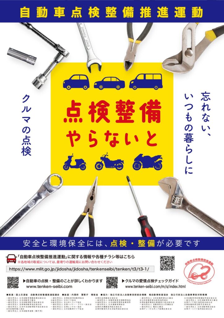 自動車点検整備推進運動 2025年9月6日 最終更新日時 : 2025年9月6日 administrator 国土交通省は、関係団体等で構成する「自動車点検整備推進協議会」、「大型車の車輪脱落事故防止対策に係る連絡会」と協力して、9月及び10月を『自動車点検整備推進運動』の強化月間とし、重点的な活動を展開します。点検のご予約はネッツトヨタ東埼玉の各店へ 国土交通省の取組み