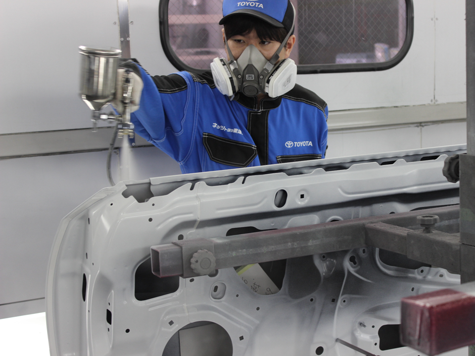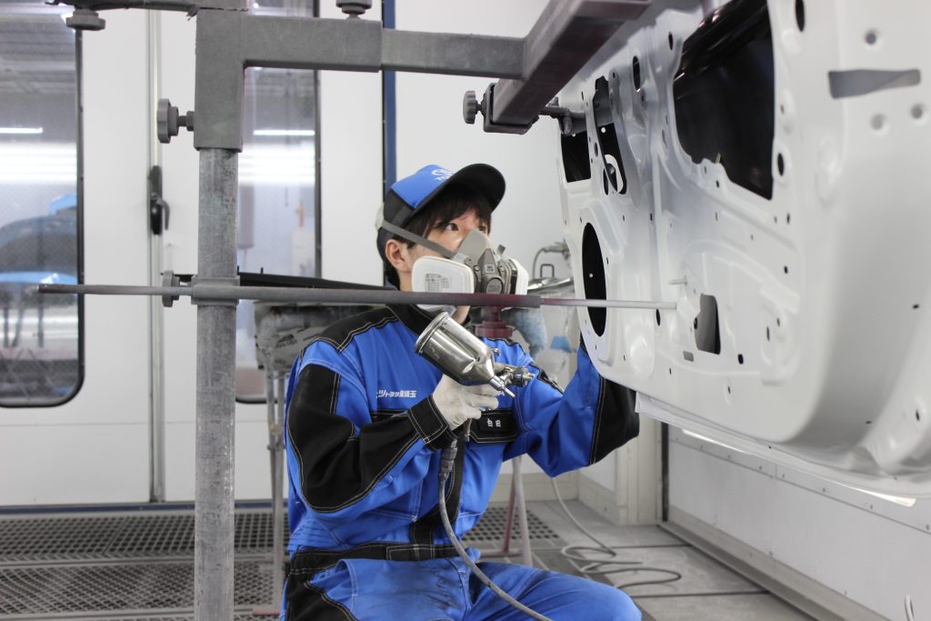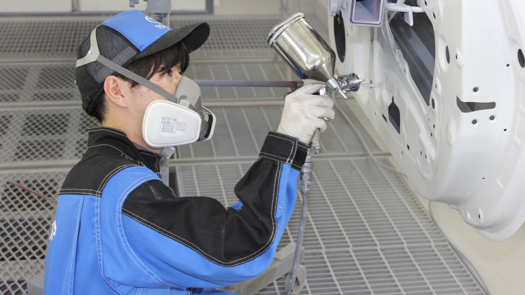 主にシーラー、マスキング、先輩作業の補助をしています。現在は、単体ドアなどの塗装作業もやらせてもらえるようになりました。