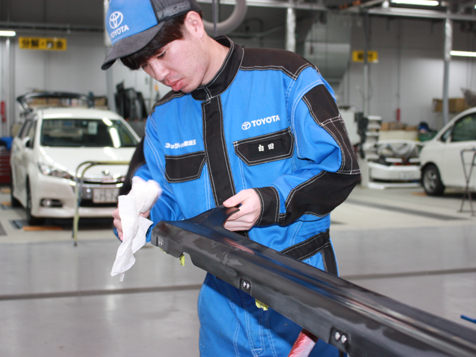 学校のクラスでカスタムカーを作成していて、部品の塗装を自分たちで行い下処理から塗装までの一連の流れを経験できたので、その経験を仕事に活かせたと思います。